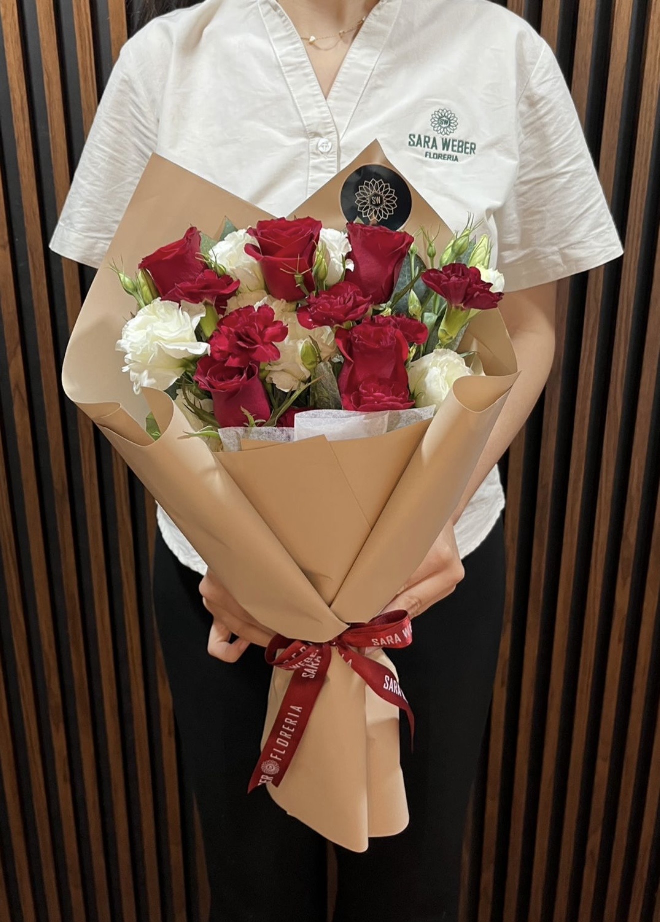 Ramo con rosas, lisianthus y clavelines. Producto Exclusivo de Floreria Sara Weber. Entregas en Santa Cruz de la Sierra, Bolivia.