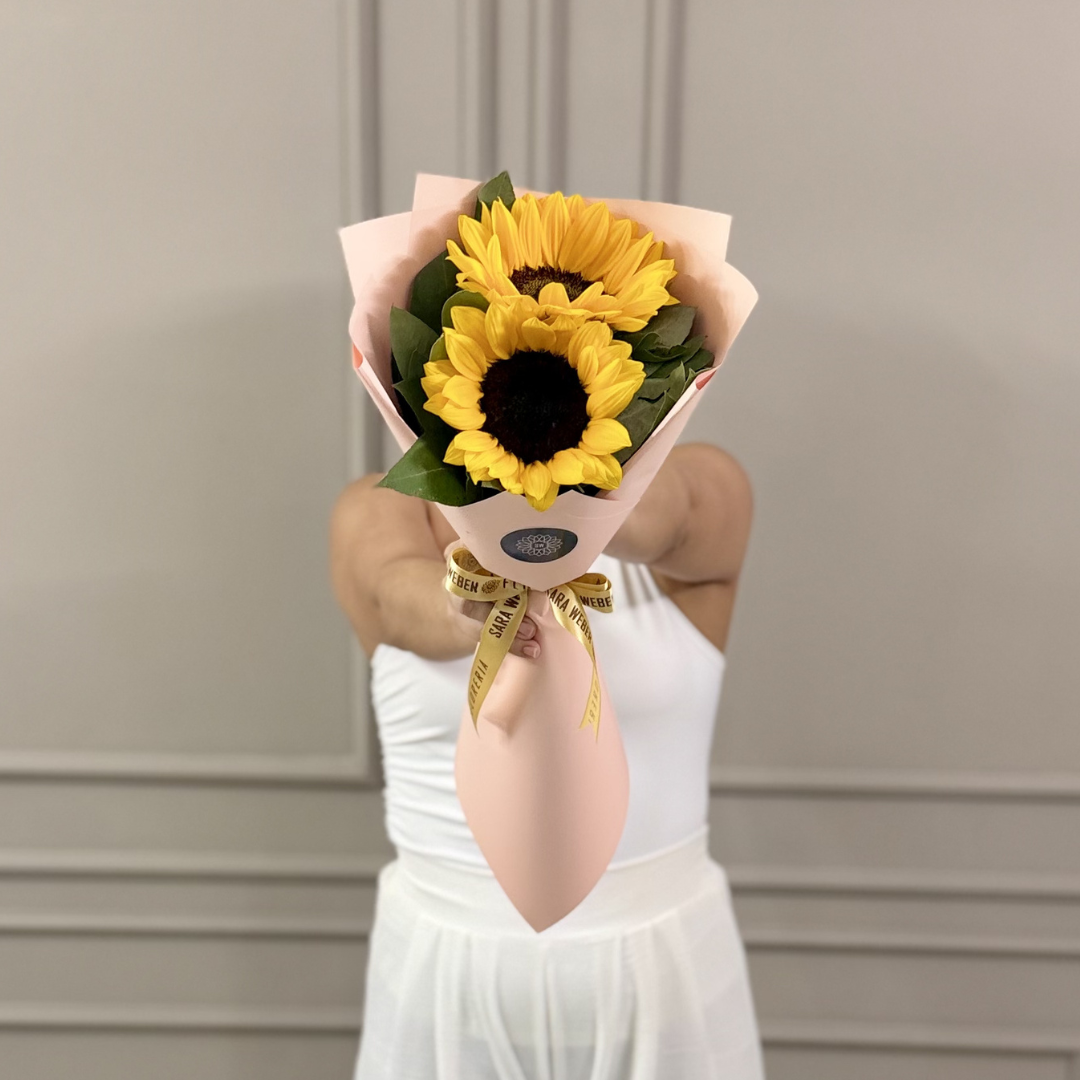 Ramo de 2 girasoles. Producto Exclusivo de Floreria Sara Weber. Entregas en Santa Cruz de la Sierra, Bolivia.